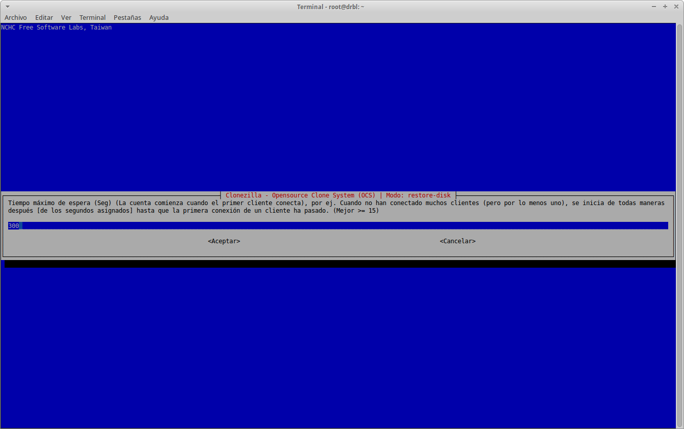 * 300 segundos: 5 minutos como máximo de espera antes de empezar a mandar la imagen y clonar